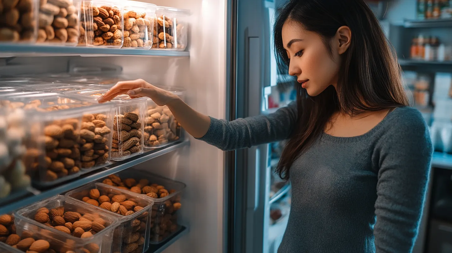 - 冷凍分層法:將堅果平鋪在淺盤中先冷凍,凍實後再轉移到儲存袋中,可以防止堅果結塊。
